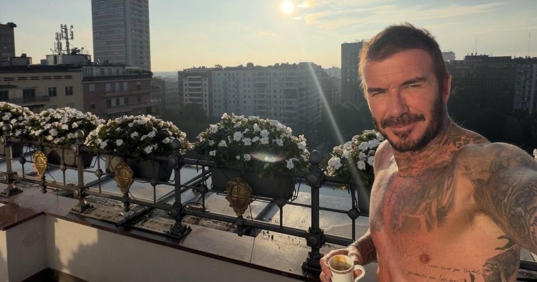 David Beckham treated his followers to an early morning shirtless snap from Milan, enjoying a cup of espresso as the sun rose above the Italian city