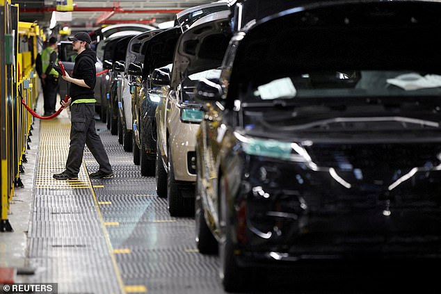 Hacked: Land Rover vehicles roll down the production line at the Jaguar Land Rover factory in Solihull. The company has been hit by a cyber attack that has forced it to suspend operations