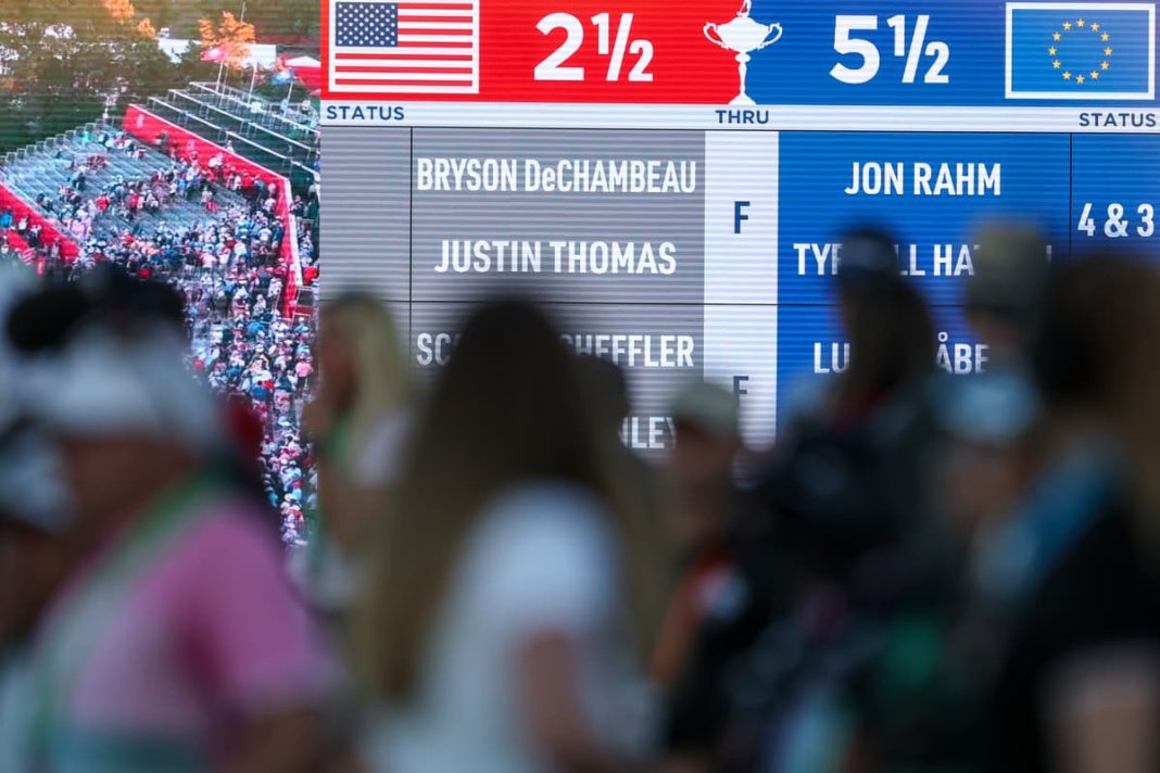 The arrival of President Donald Trump looked to give the hosts a lift, but world no1 Scottie Scheffler and US Open champion JJ Spaun were roundly beaten by John Rahm and Sepp Straka. Tommy Fleetwood and Justin Rose held their nerve to see off an off-colour Bryan DeChambeau and Ben Griffin before Rory McIlroy and Shane Lowry ground out a half point.