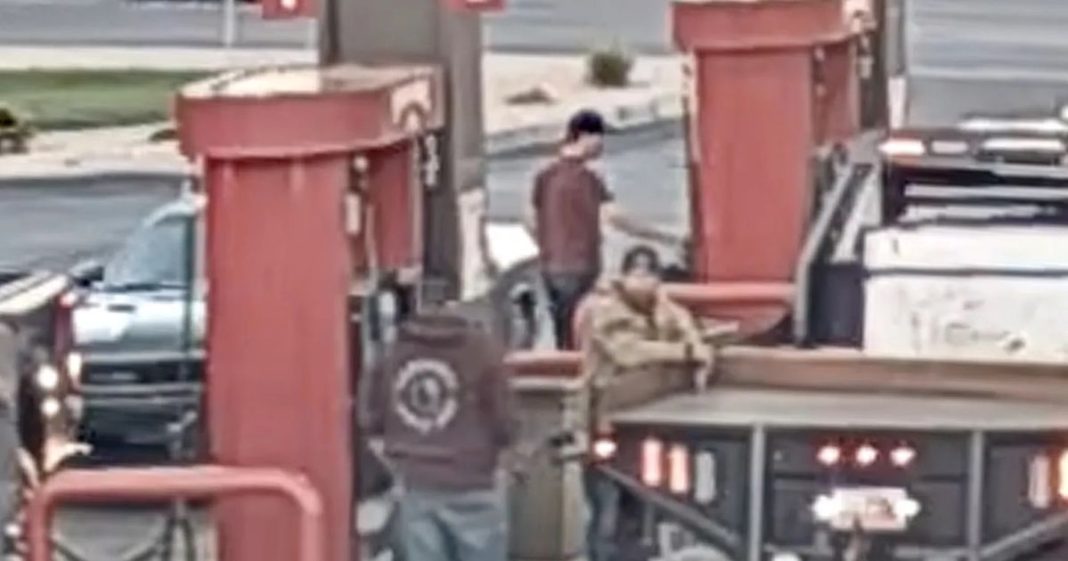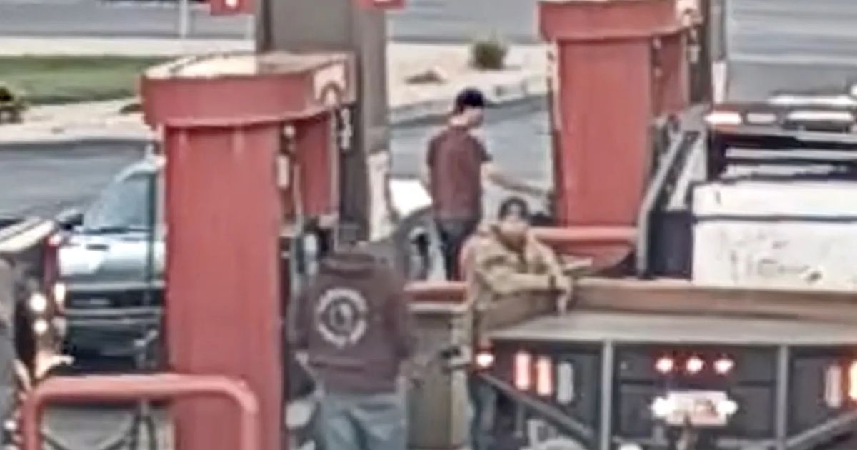 Seemingly oblivious to the shooting that took place just one day earlier, he brings the nozzle back to the pump and driving away. The footage was given to Fox News after an anonymous tip was provided to police that Tyler had been in nearby Cedar City close just moments after the attack took place.