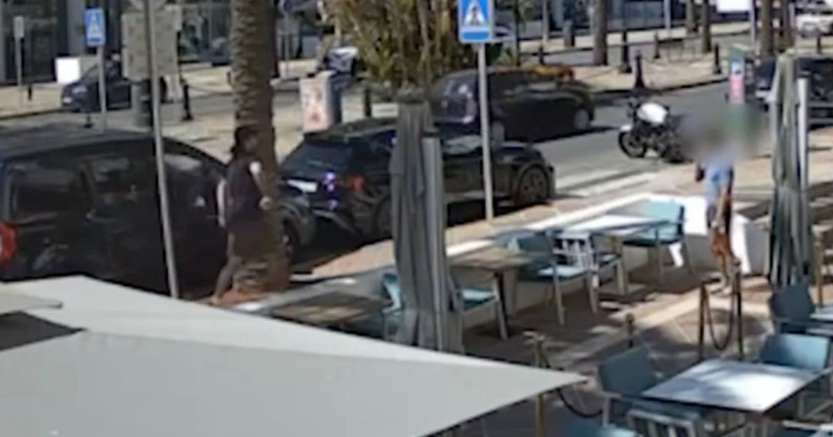 The 25-year-old man was shot dead at a cafe in the Costa del Sol’s upmarket Puerto Bans resort, with the gunman believing to have been captured on CCTV footage as he opened fire on his victim
